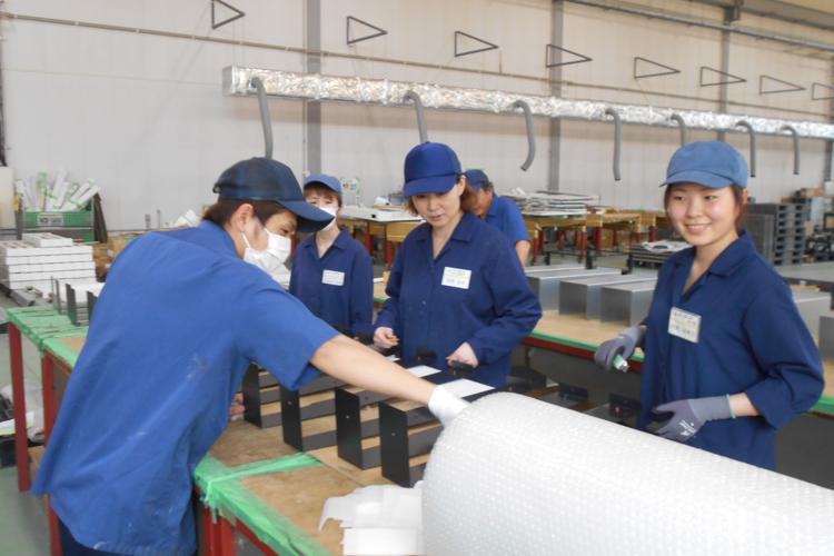 当社では、事務部門は女性が大半を占め、組立部門も半数が女性で生き生きと仕事をしております。