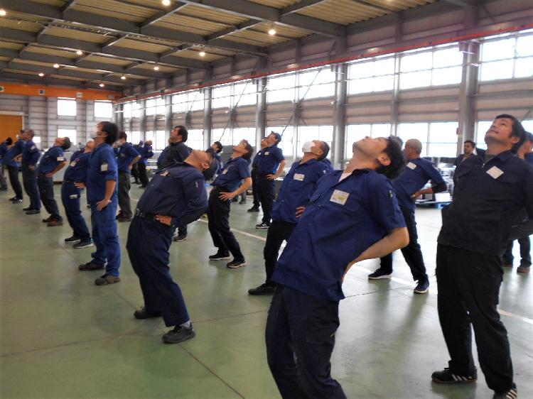 運動機会の増進に向けた取り組みとして、毎朝、社員のその日の体調チェックとウォーミングアップによる作業中の事故防止 のため、始業開始前にラジオ体操を実施しています。