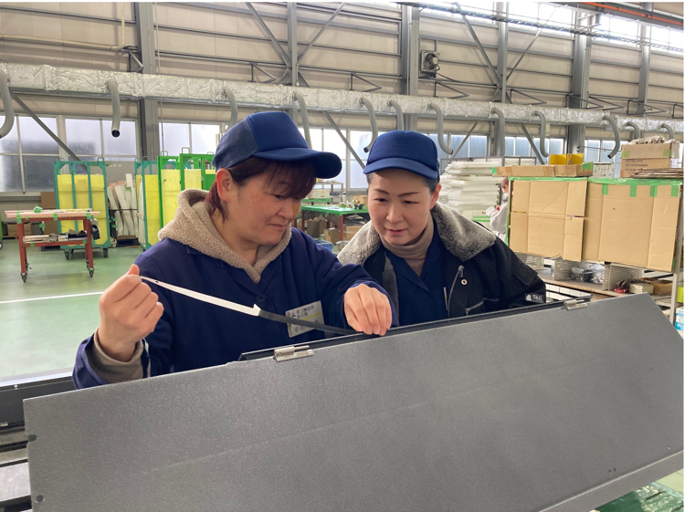 当社では、事務部門は女性が大半を占め、組立部門も半数が女性で生き生きと仕事をしております。